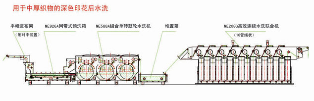 可以滿足各類織物(全棉、棉氨、化纖、絨類等克重范圍80-600GSM)的各種水洗工藝,尤其在染色后和印花后水洗工藝中大大節(jié)約了水和蒸汽等各項能耗成本,同時以優(yōu)質的設備結構和設計原理,提高了織物水洗品質,給客戶參與市場競爭提供強有力的支持。