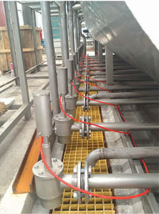 3、繩狀水洗段獨立溫控,容布量(20-150米)可以獨立設定,配有獨立循環(huán)噴淋(30噸/小時)和過濾系統(tǒng),大大提高了布液交換頻率,從而提高水洗效果。